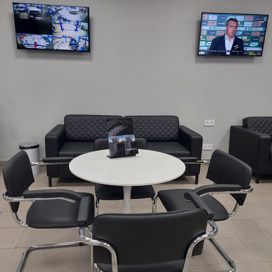 Приятно удивили работой: колеса поменяли оперативно, старые аккуратно упаковали и сложили в багажник. Видно, что мастера работают профессионально. Есть удобная зона ожидания с экраном - можно наблюдать за процессом.