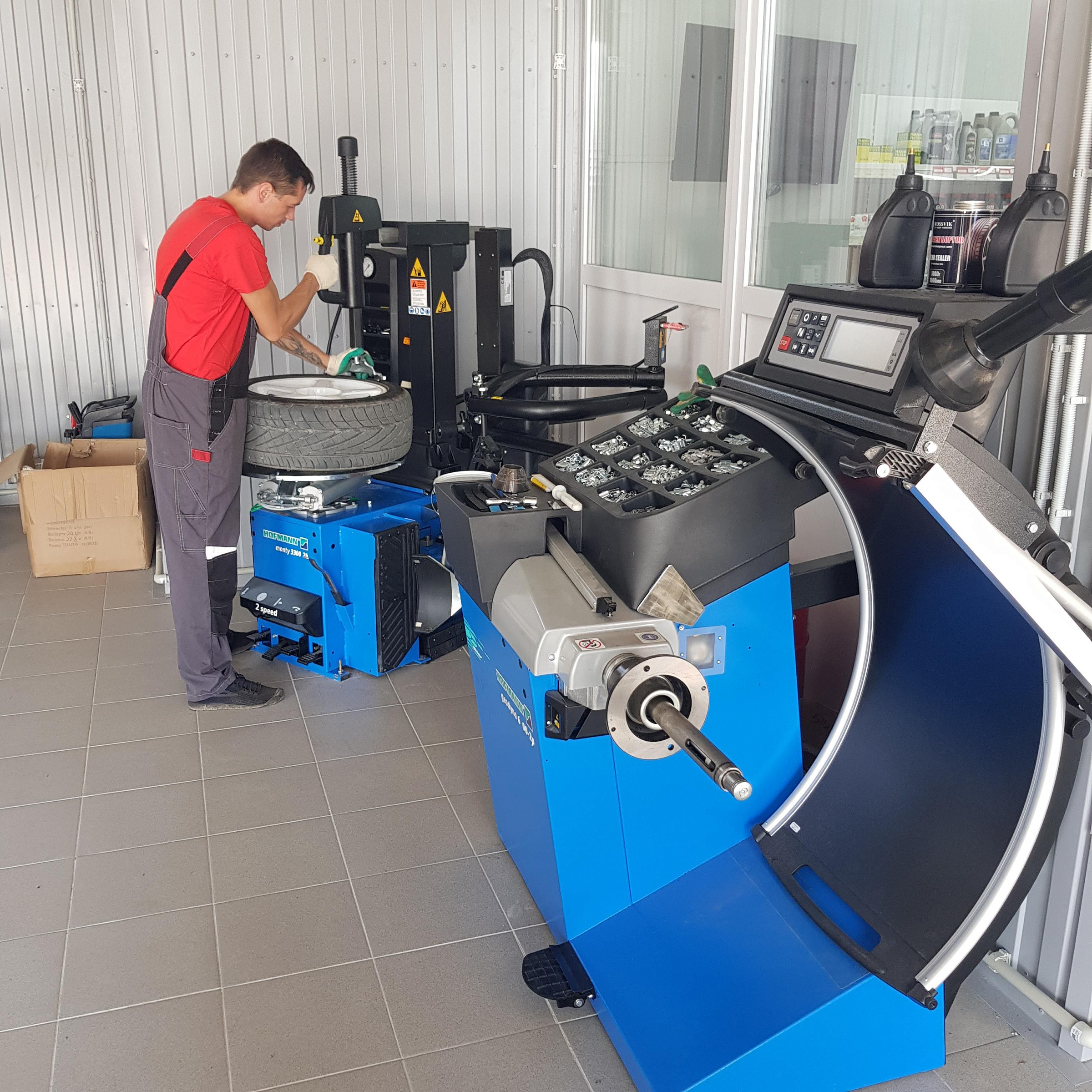 Приятно удивили работой: колеса поменяли оперативно, старые аккуратно упаковали и сложили в багажник. Видно, что мастера работают профессионально. Есть удобная зона ожидания с экраном - можно наблюдать за процессом.