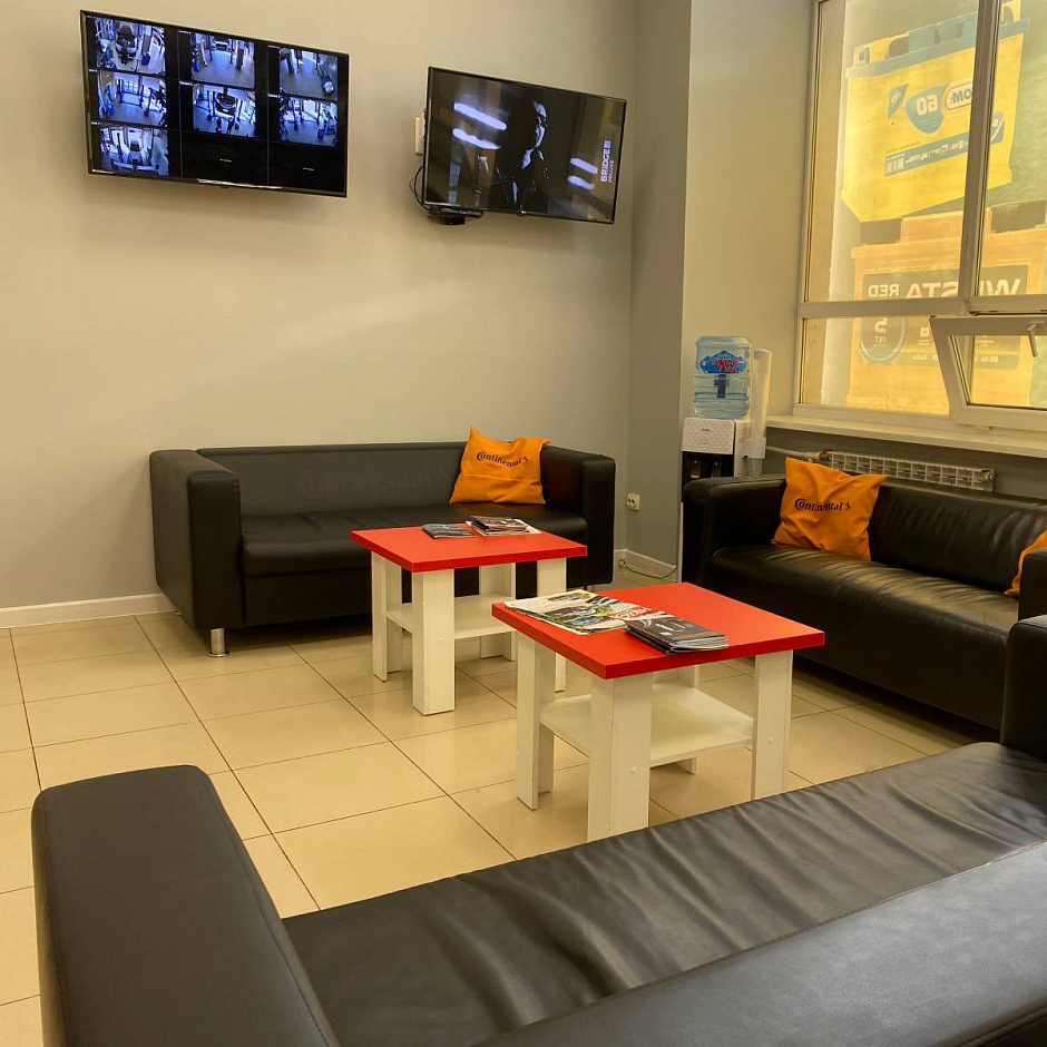 Приятно удивили работой: колеса поменяли оперативно, старые аккуратно упаковали и сложили в багажник. Видно, что мастера работают профессионально. Есть удобная зона ожидания с экраном - можно наблюдать за процессом.