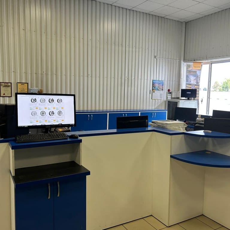 Приятно удивили работой: колеса поменяли оперативно, старые аккуратно упаковали и сложили в багажник. Видно, что мастера работают профессионально. Есть удобная зона ожидания с экраном - можно наблюдать за процессом.