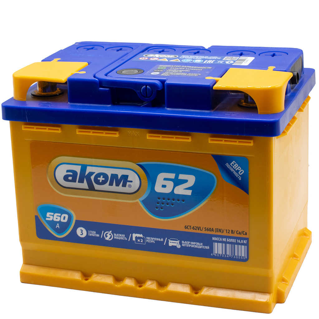 Аналоги аккумулятора AKOM 62 Ач от 560 А обратная полярность европейский тип корпуса