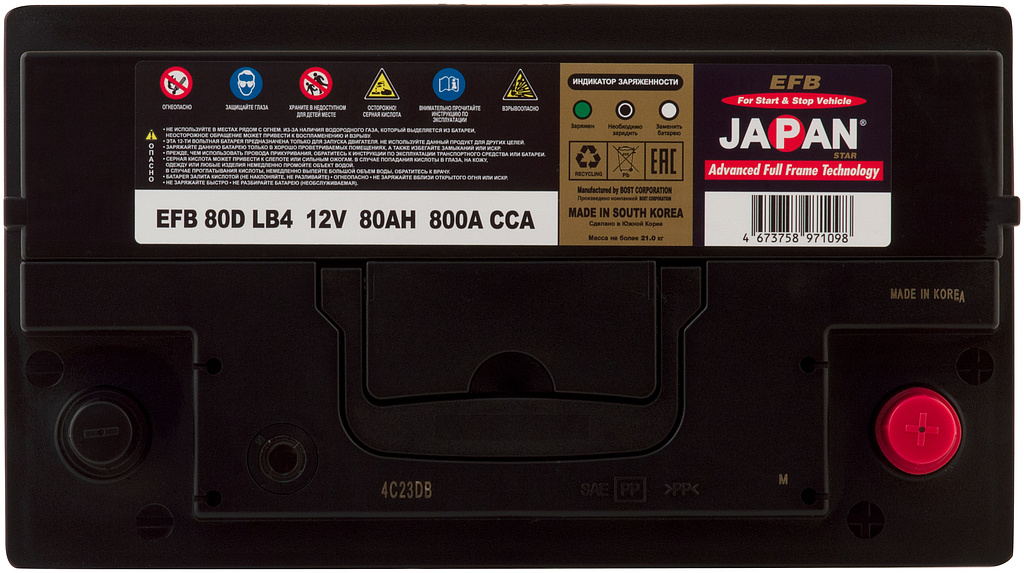 Аккумулятор JAPAN STAR EFB (Enhanced Flooded Battery) — это современная разработка завода BOST CORPORATION (Южная Корея), созданная с использованием запатентованных технологий для автомобилей с системой Start-Stop.