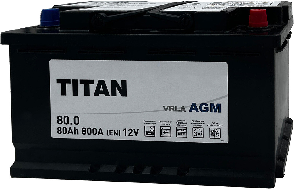 Аккумулятор TITAN AGM 80 Ач 800 А обратная полярность