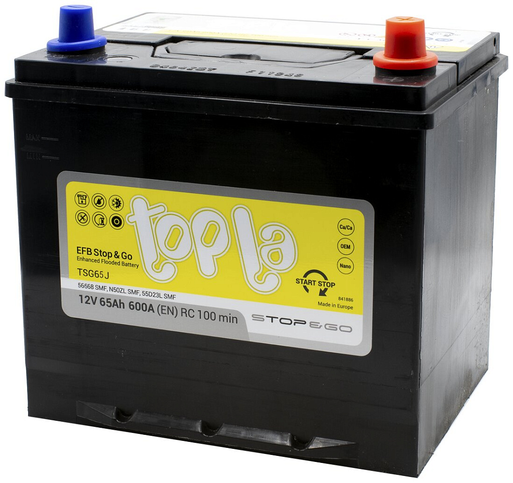 Аналоги аккумулятора Topla EFB Stop&Go Asia (56568 EFB) 65 Ач от 600 А обратная полярность азиатский тип корпуса