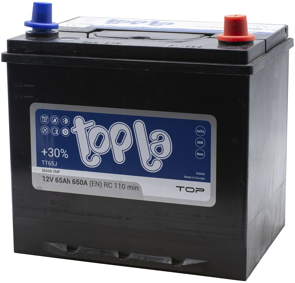 Аналоги аккумулятора Topla Asia Top (56568 SMF) 65 Ач от 650 А обратная полярность азиатский тип корпуса
