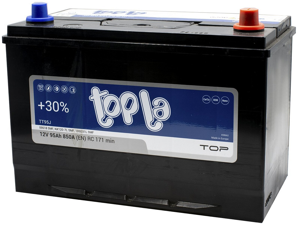 Аналоги аккумулятора Topla Asia Top (59518 SMF) 95 Ач от 850 А обратная полярность азиатский тип корпуса
