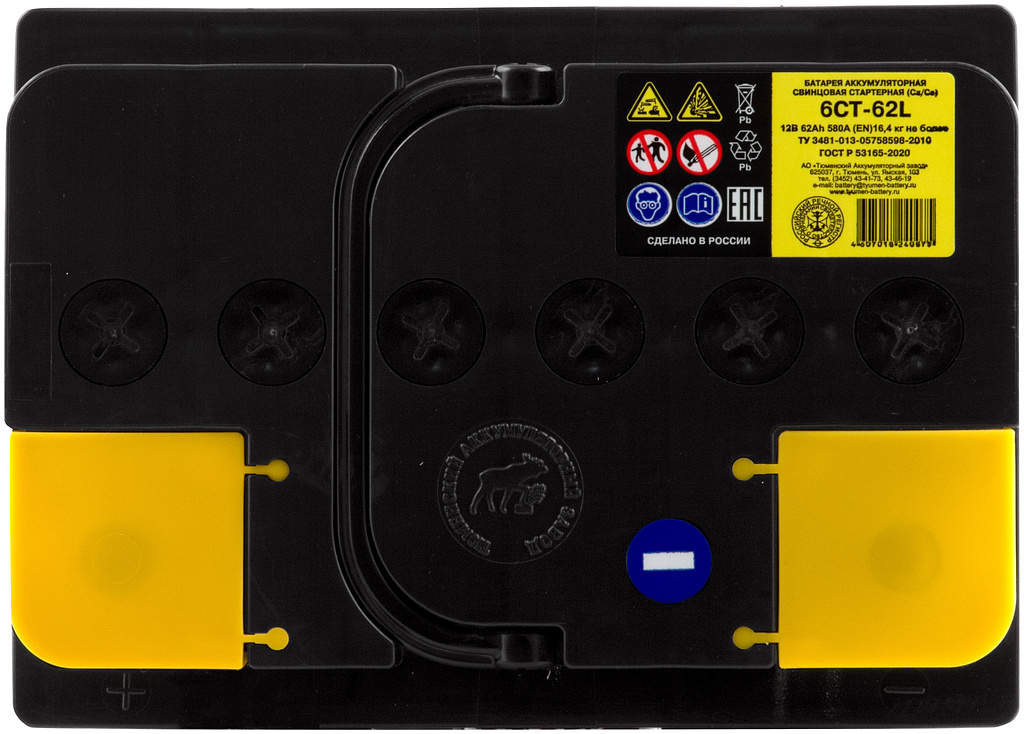 Аккумулятор ТЮМЕНСКИЕ АККУМУЛЯТОРЫ СТАНДАРТ 62 Ач 580 А прямая полярность