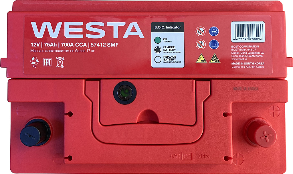 Аккумуляторы WESTA Korea SMF производятся на заводе BOST CORPORATION в Южной Корее с использованием новейших технологий и материалов премиум-класса. Эти батареи предназначены для большинства современных бензиновых и дизельных легковых автомобилей. Благодаря своей конструкции и технологии изготовления они обеспечивают надежное питание всех современных бортовых электроприборов.