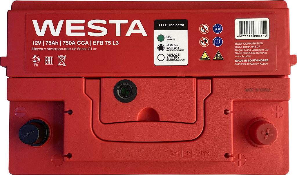 Описание аккумулятора WESTA Korea (EFB 75 L3)