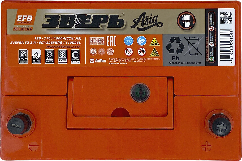 Аккумулятор ЗВЕРЬ Asia EFB 82 Ач 770 А обратная полярность