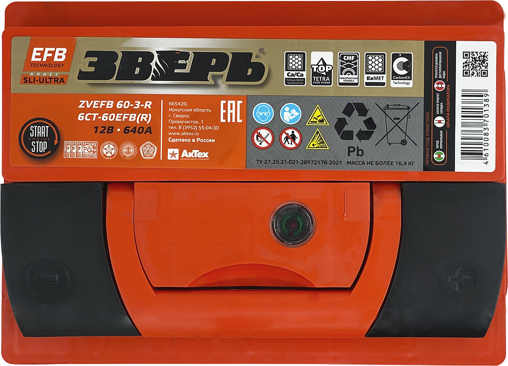 Аналоги аккумулятора ЗВЕРЬ EFB 60 Ач от 640 А обратная полярность европейский тип корпуса