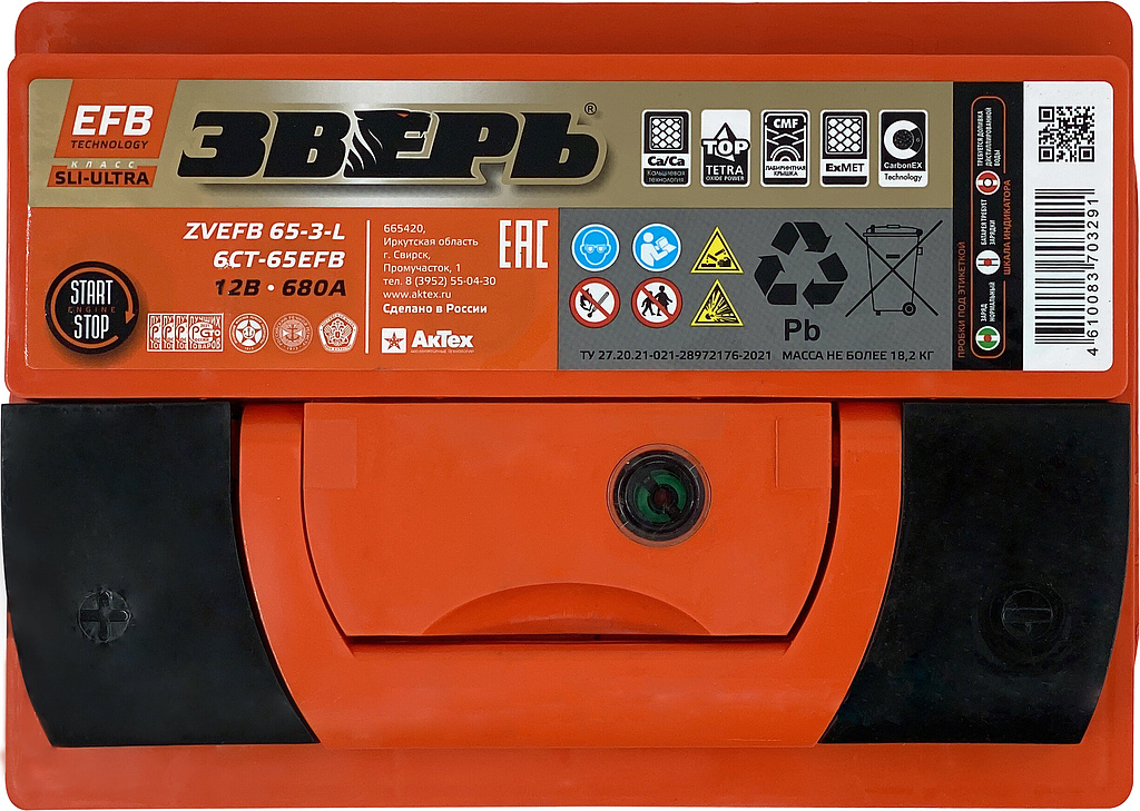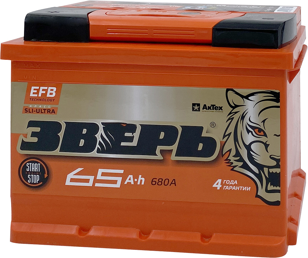 Аккумулятор ЗВЕРЬ EFB 65 Ач 680 А прямая полярность